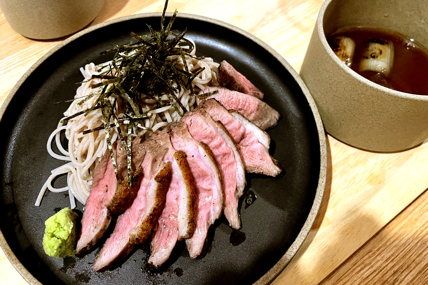 鴨肉の赤身がやわらかく、脂身はほどよく…蕎麦の前に、まずは鴨肉をしっかりと味わいました。