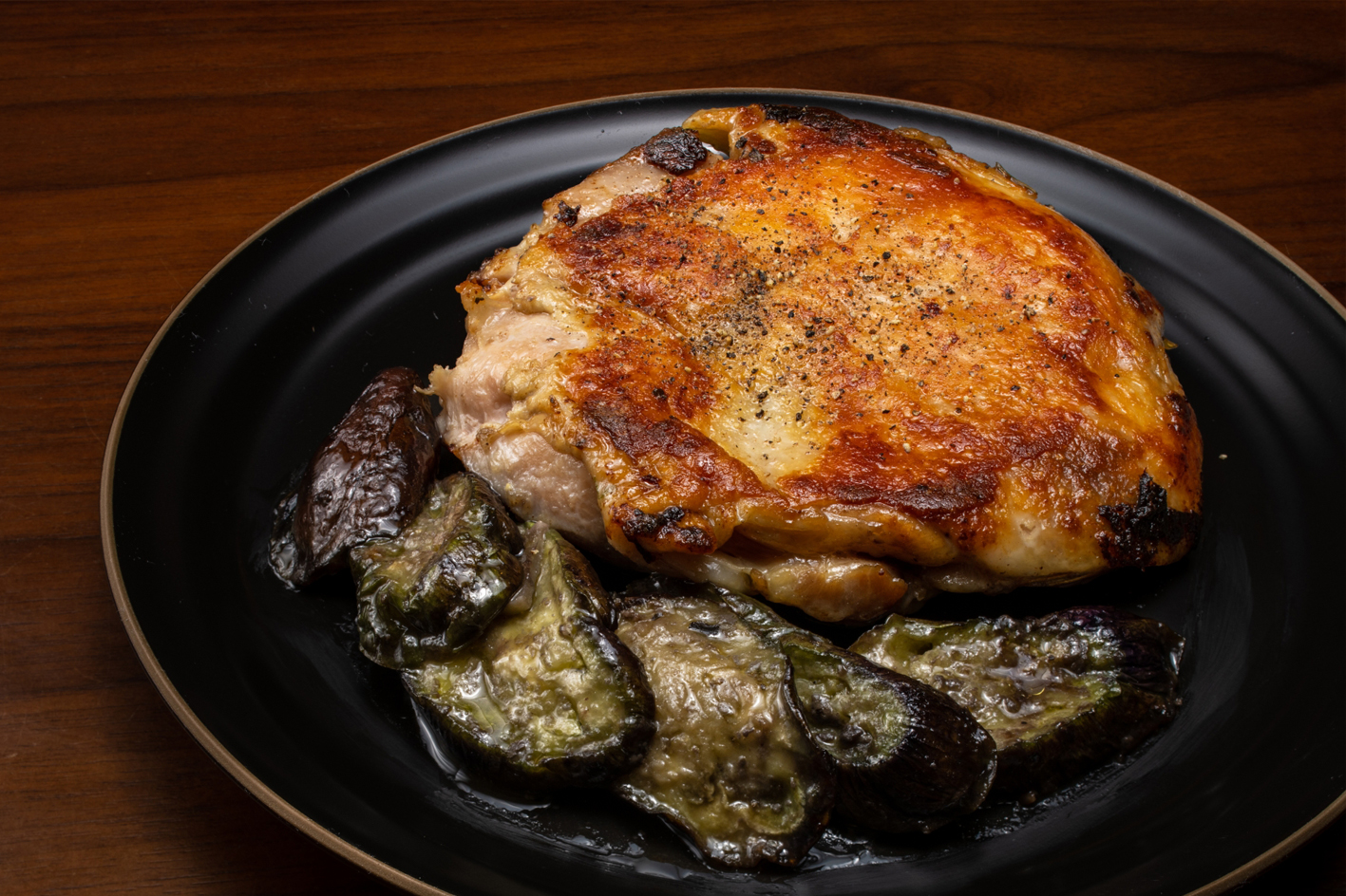鶏肉などの食材をオリーブオイルとハーブでじっくり煮た料理。