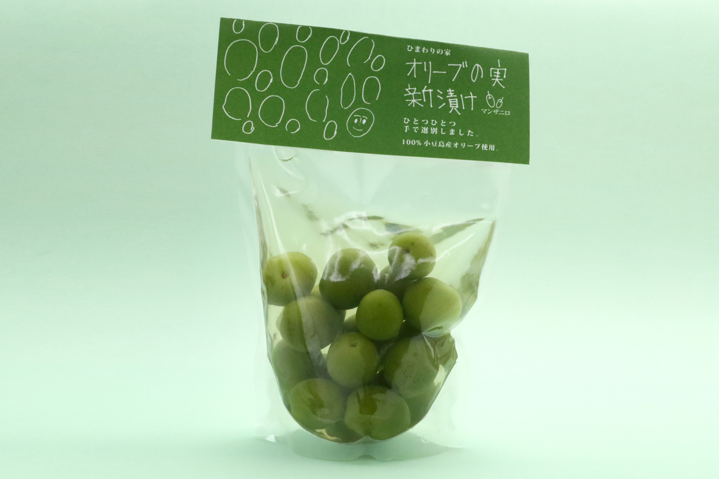 冒頭でも「ひまわりの家」さんのオリーブ収穫祭に参加させていただいた話を書きましたが、ここでは、彼ら彼女たちが育てたオリーブの実の新漬けのご紹介です。