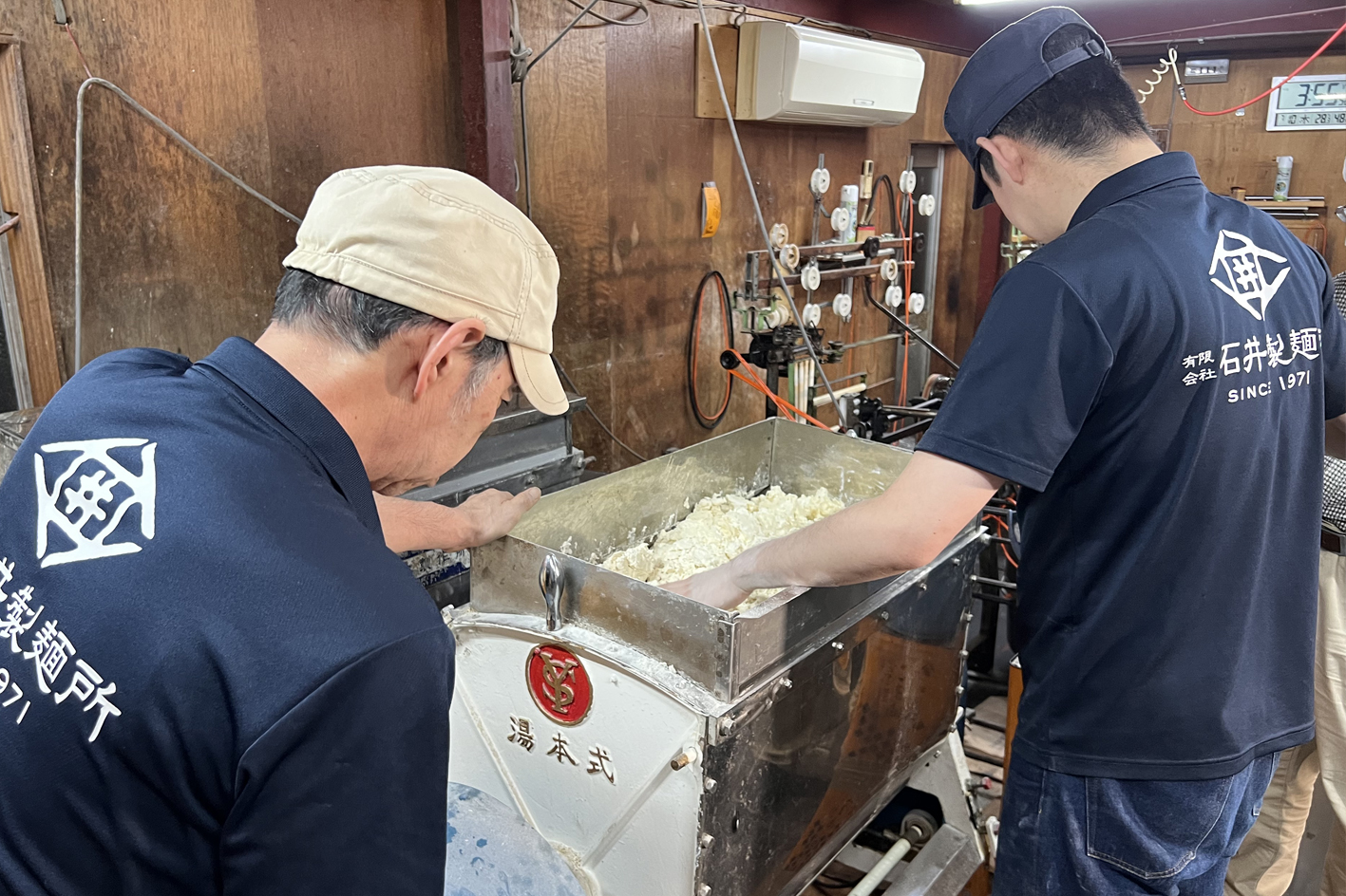 素麺の原料を練り合わせて生地をつくる「練り」の工程で使用します。