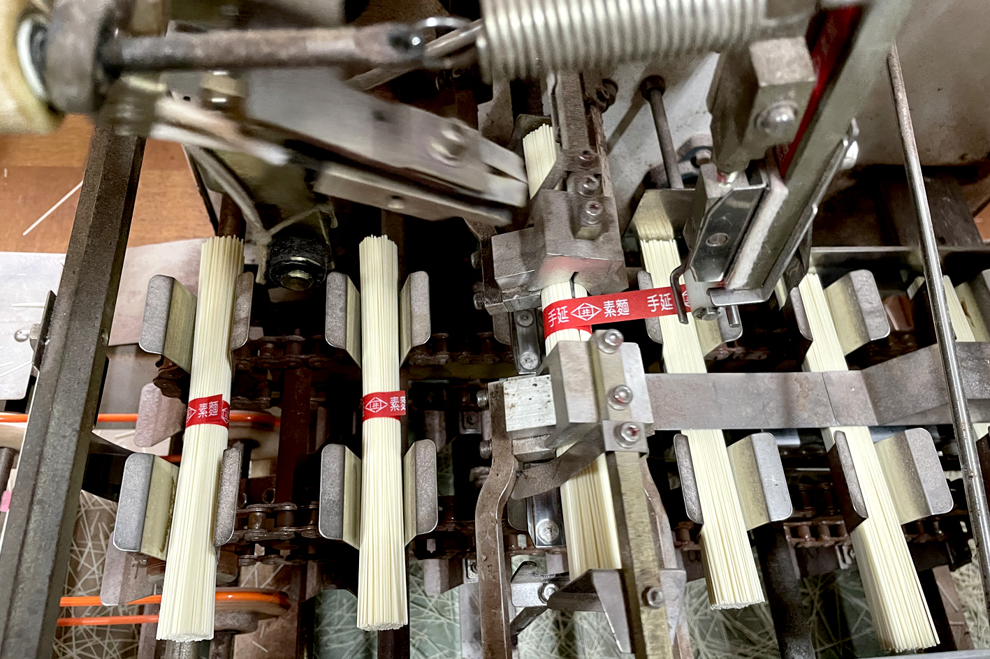 とはいえ、全てをオートメーション化してしまうと“手延べ素麺”の良さが失われてしまいますから、先人の知恵を大切にしながらできるだけ“手延べ製法”を再現し、それ以上に美味しくできるようにと製麺用の機械・道具類は工夫されています。