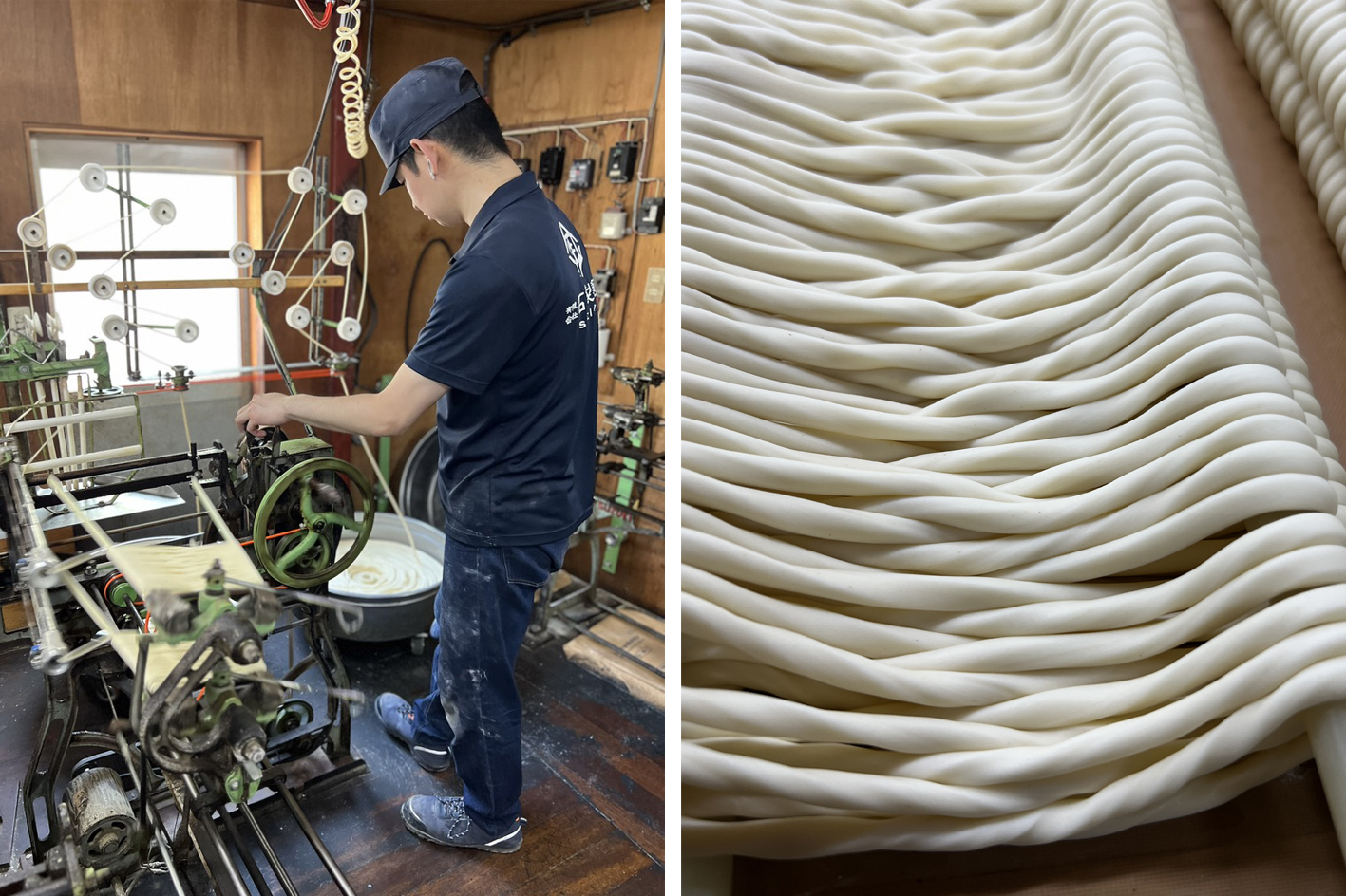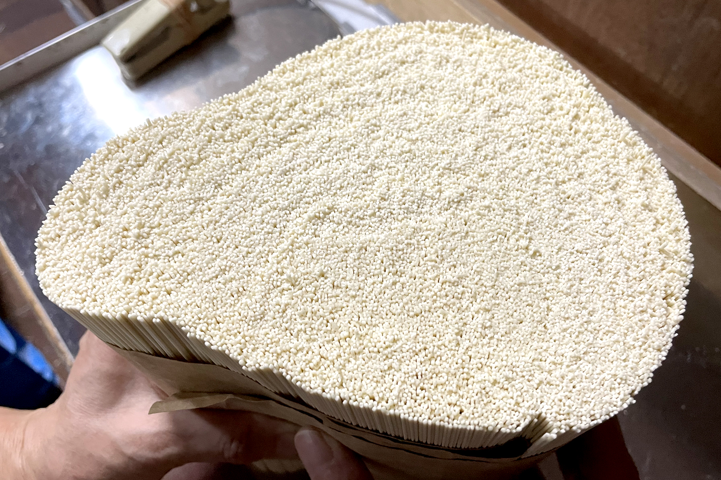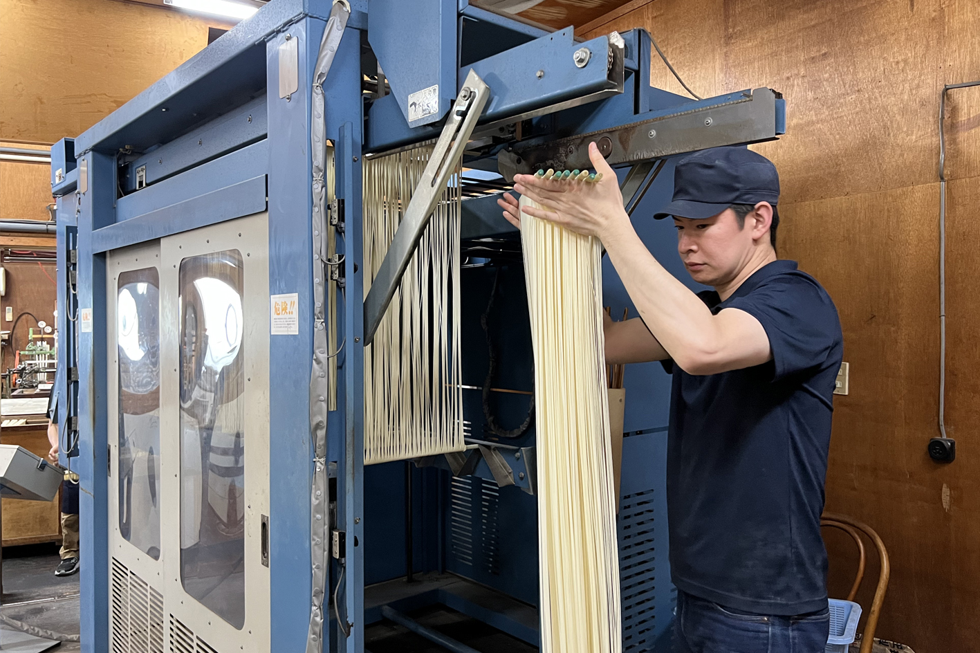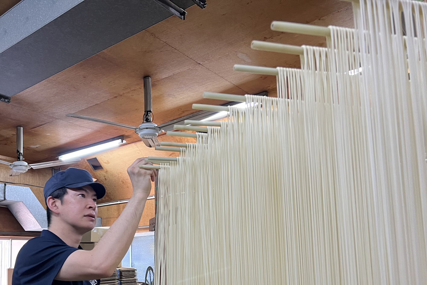 この工程が手延べ製法の肝であり、手延べならではの美味しさにつながります。