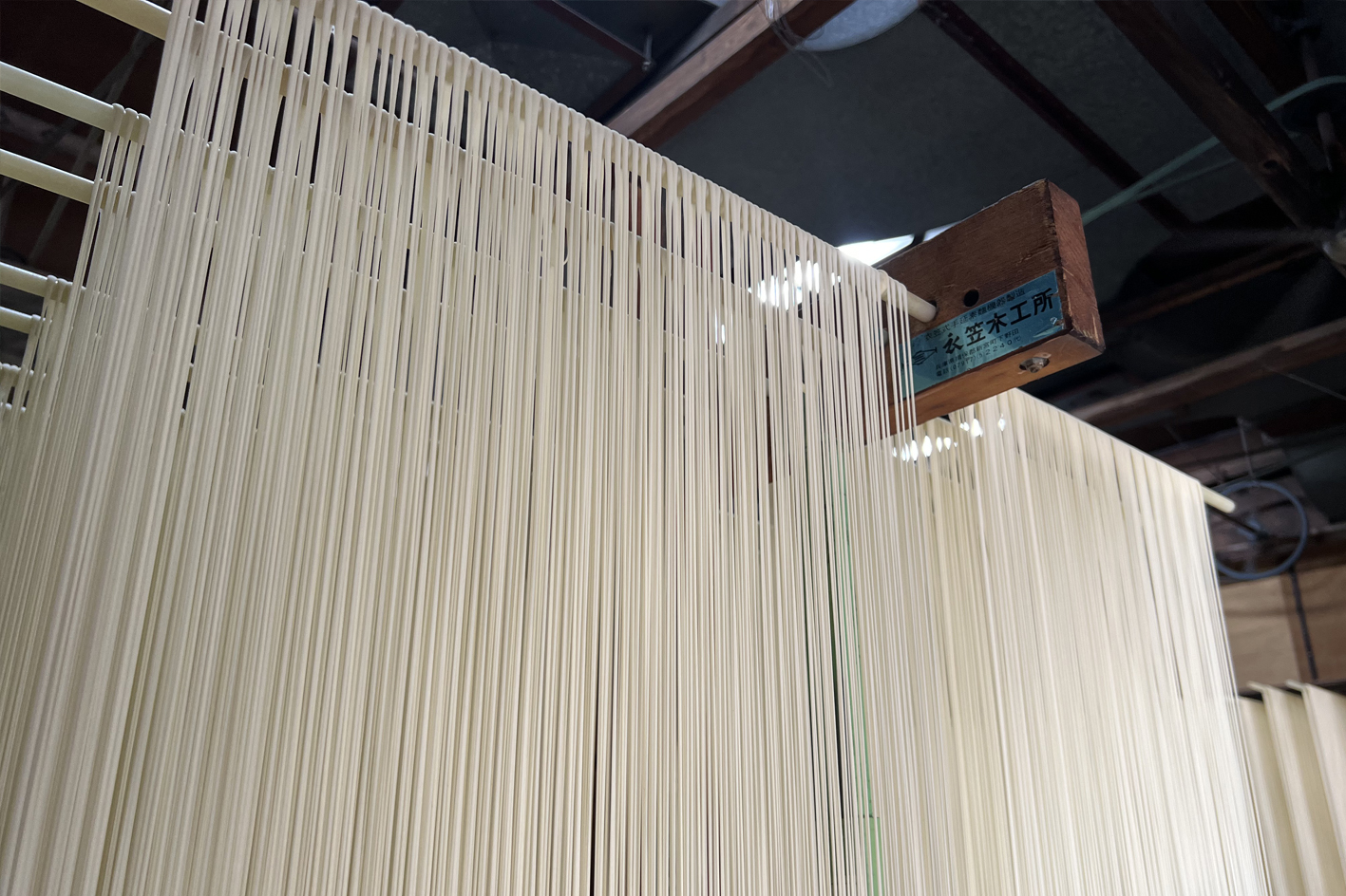 「じっくり乾かす」ことが重要で、一気に乾かしてしまうと、麺の表面がひび割れて荒れるだけでなく、麺が細く締まらず、太くかさの高い麺になってしまいます。