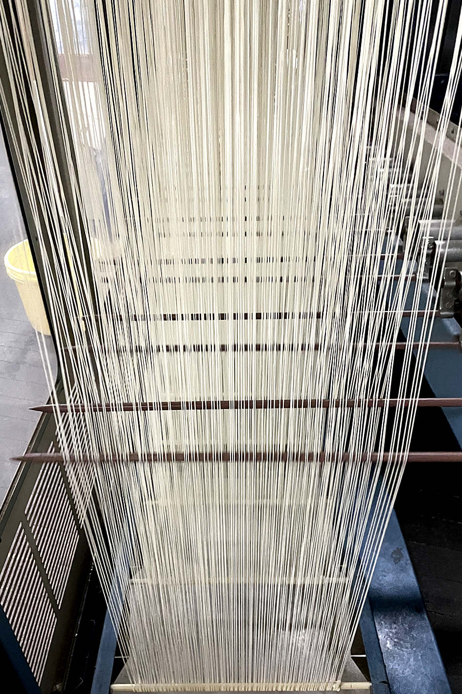 19センチメートル×8回分=152センチメートルに、乾燥時に縮む長さや、裁断時に切り落とされる部分を考慮して、約170~175センチメートルの長さまでのばします。