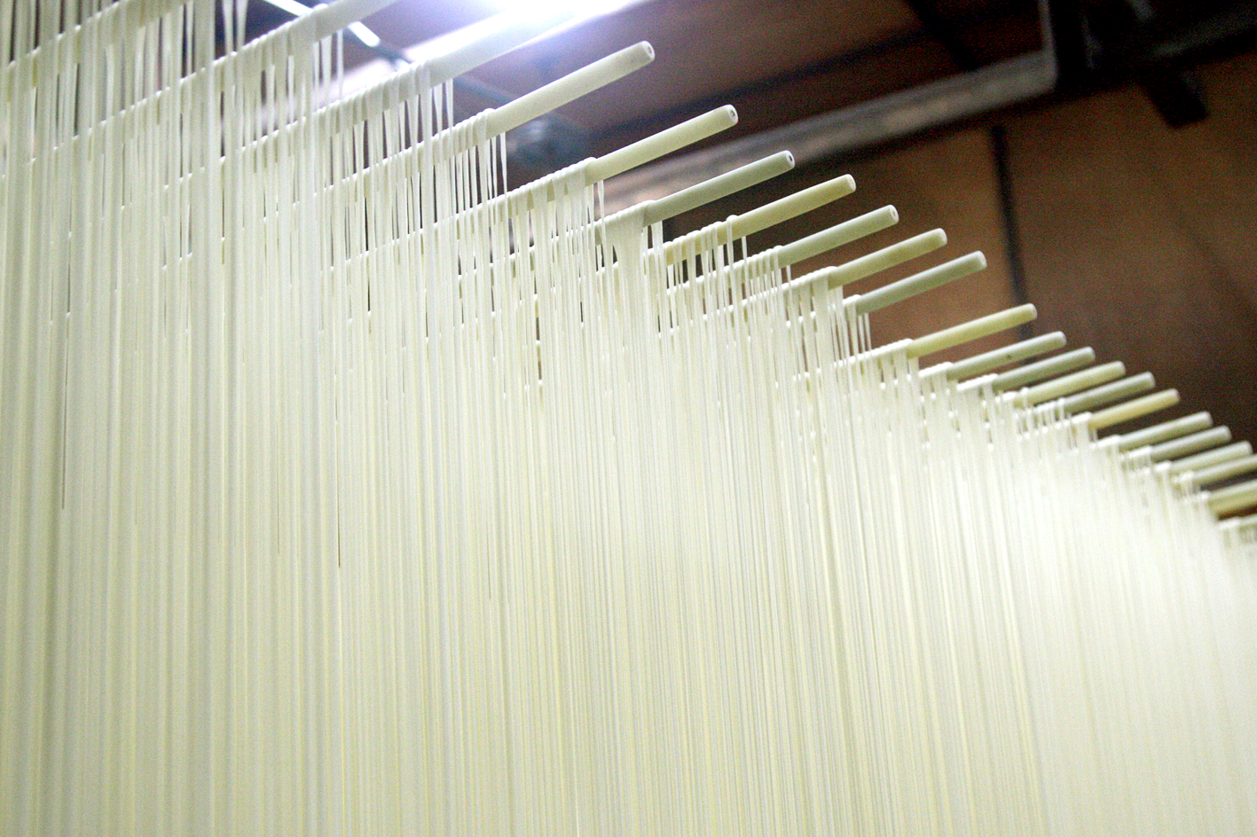 手延べ素麺の製麺所の多くは、さすがに上記の写真のような姿になると、ほとんどの作業ができなくなってしまいますね。。。